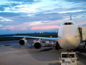 楽しい思い出を胸に、夕暮れ迫る那覇空港に向かいました。