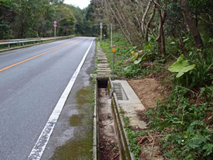 林道整備の是非は別として、新たに整備された林道には小動物が側溝に落ちない工夫や落ちた場合でも自力で脱出できる工夫が行われているのですが、古くから整備されている既設の林道や一般道では整備されていない区間が多くあります。