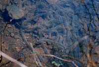 | もし、オタマジャクシを家で飼ってみたい方は、少しだけ(5〜10匹程度)つかまえて飼ってみて下さい。卵も同じです。沢山つかまえると世話が大変だし、元々棲んでいる池や沼のカエルがいなくなってしまいます。
