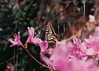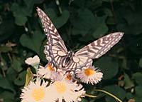 | 本格的な春到来です。公園や野山のツツジ類も満開です。クヌギやコナラ等の落葉広葉樹も葉を広げました。新緑で野山の木々が黄緑色の化粧をしたようです。この頃になると、公園や野山を飛ぶ比較的大きな蝶々を見かけるようになります。アゲハチョウの仲間です。第3回目は、比較的身近でも見かけることができるアゲハチョウの仲間の紹介をしましょう。 アゲハチョウの仲間は冬の間を蛹で越して、ツツジの花が咲く頃になると一斉に羽化を始めます。まず、公園や緑の多い住宅地、野山等で一番よく見かけるのはアゲハです。ナミアゲハとも言います。 アゲハは、私の住む横浜では、4月上旬〜中旬に姿を現します。暖かい地域では3月下旬、寒い地域では5月中旬位に姿を現して、1年間で5回から6回発生します。主に、人家の庭に植えられたミカン類やサンショウ等を食べて育つため、家の近くでもよく見かけます。 幼虫は、4齢までは鳥の糞に似た黒と白の模様をしていますが、終齢になると緑色の芋虫に変身します。 アゲハをよく見かける所に住んでいらっしゃったら、サンショウやミカン類の苗や鉢を庭やベランダに置くだけで、卵を産みに来ると思います。私が以前住んでいたマンションの4階のバルコニーにも卵を産みに来ていました。 |