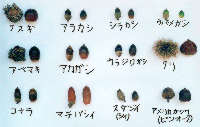 皆さんも公園や野山に出かけてドングリを探してみては如何でしょう。何種類のドングリを見つけることができるでしょうか。 最後に皆さんが公園や野山で一般的によく見かけるドングリを簡単に紹介して今回の生きもの便りを終えたいと思います。 |