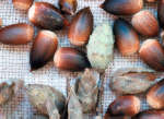 ・小さくて濃茶色のドングリ・3稜形の殻に包まれている → スダジイ |