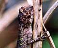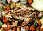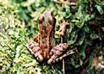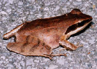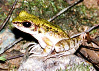 夕食をすまし、少し休憩をして7時を回った頃からヤンバルの森に出動です。走り慣れた林道に向かいますが、なんだか何時もと様子が違います。まず、寒い!しかも落ち葉がカサカサと音を立てるほど乾燥している!風も強い!あーあ・・・両生・は虫類の観察には最悪のコンディションです。でもそこは沖縄、ヤンバルの森。少いながら色々な生きものが姿を現してくれます。林道に入るとリュウキュウカジカガエルやヒメアマガエルが車に驚いて飛び跳ねます。今年孵化し上陸したと思われる幼体のハナサキガエルやホルストガエルも沢山います。背中が緑色の美形のハナサキガエルの成体を見つけて写真撮影。茶色のタイプもいたなと思って近づいてみると、これが初めて見るリュウキュウアカガエル。これも難なく写真を撮ることができました。寒さのせいで動きが鈍いようです。 |