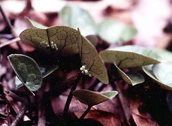 ヒメカンアオイに産み付けられたギフチョウの卵塊(兵庫産)