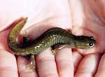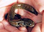 里山に生息するトウキョウサンショウウオは、ギフチョウと同じように、開発による生息環境の減少や雑木林管理の放棄等による生息環境の悪化で、年々少なくなってきています。この丘陵地でも、一部の谷では生活用品や古タイヤが沢山捨てられていて、まるでゴミ捨て場と化しています。
