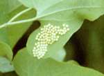交尾後の雌は、ウマノスズクサの葉裏や茎、またはウマノスズクサの近くの別の植物に10〜100程度の卵塊を産み付けます。 |