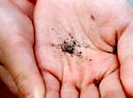 ウスバカゲロウの幼虫は、すり鉢状の穴を掘り、穴の底に潜っていて、小さな昆虫が穴の中に落ちて這い上がれなくなったところを捕まえて食べることから、アリジゴクと呼ばれています。何匹かを掘り出して、子供達の手のひらに乗せて写真を撮りました。お尻と脚を使って潜ろうとするので、くすぐったいみたいです。 |