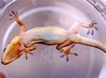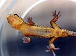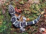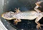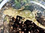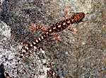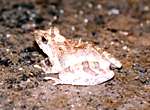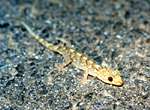 次に見つけたのは、ヤマシナトカゲモドキです。ヤマシナトカゲモドキは、「生きもの便り その6」で紹介したクロイワトカゲモドキの久米島亜種です。今回、久米島に来た理由はこのトカゲモドキを見るためと言っても過言ではありません。興奮してシャッターを押します。クロイワトカゲモドキの5亜種の内、最もエレガントな亜種であることを実感し後ろ髪を引かれながら、次へ進みます。ところがヤモリ以外何も出てきてくれません。5月に入って雨が少なく、林床が乾燥しているせいかもしれません。意識して渓流沿いや湿性地を歩きますがカエルにも出会いません。やっとの思いで見つけたのが、お馴染みのリュウキュウカジカガエルです。 |