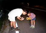 島に到着後、早めの夕食と食料や飲み物を購入して島内を下見します。目的はクロイワトカゲモドキの別亜種の観察です。環境の良さそうなポイントを3〜4箇所ピックアップして、調査開始です。 |