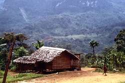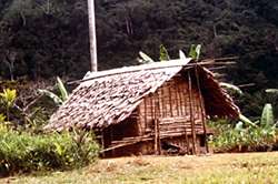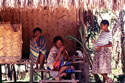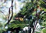 さて、採集の方ですが、集落の周りでは、ハイビスカスやランタナの花に吸蜜に集まるトリバネアゲハやキシタアゲハ等、アゲハチョウの仲間を待ちぶせして採集します。 |