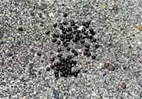 空港から車を走らせること約1時間、やっとこさで、三太郎トンネルに到着しました。でも三太郎峠に行くための旧道が見付かりません。行ったり来たりを繰り返していると抗口の側に大きな水溜まりがあることに気付きました。さっそく車を停めて調べます。いましたいました。水溜まりの中は、黒いカタカナのキの字だらけです。沖縄ではホオグロヤモリで、また東南アジアではトッケイヤモリで、街灯のある建物の壁がキ印だらけなのですが、奄美大島では水溜まりがシリケンイモリによってキ印だらけです。 |