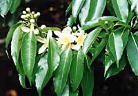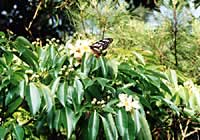 沖縄とほぼ同様な環境で見付けられることが解ったため、少し周りを見る余裕が出てきました。林道沿いのイジュが白い花を付け、アサギマダラが優雅に吸蜜に訪れています。 |