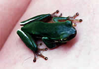 降り続いていた雨も止み、絶好のコンデションで夜を迎えました。「今夜はスッゴーイ」などと、知らない人が聞いたらとってもHに聞こえるような話しをしながら、車を中央林道に向けて走らせます。今夜は名瀬から金作原を抜けて、途中の渓流を調査しながら住用村に抜ける予定です。市内を抜け山道に入ると、リュウキュウカジカガエルやヒメアマガエルが車に驚いて飛び跳ねます。やっと奄美のステージ、幕が上がり始めました。アマミハナサキガエルも沢山います。そのたびに車から降りてバシバシ、シャッターを切ります。 |