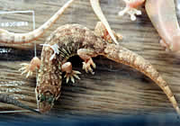 続いてはタシロヤモリというヤモリの採集です。街灯のある民家の壁や公衆電話等を覗いていきますがちっとも見付かりません。あきらめかけたころ、ガソリンスタンドと何かの工場の壁で動き回るキ印を発見し、やっとの思いで4匹採集しました。これでHさんへのお土産も完了です。