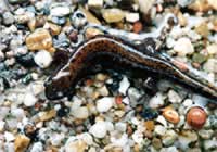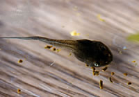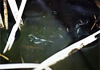 もう少し標高の高い場所で、やっとカスミサンショウウオの幼生を見付けました。この場所から県境までの湿地には、ほぼ全ての場所で幼生が見つかりました。 |