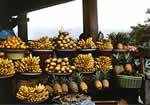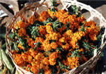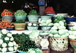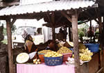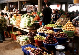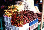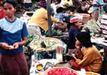 | バリ島の山地部で昆虫採集を行うときには、必ず高原地帯にある市場に立ち寄って、山で食べる昼食用のバナナ、ホテルに帰って食べるための果物や高原野菜、お土産用のスパイス等を買い求めています。 高原地帯の市場の魅力は、果物や野菜(高原野菜)の種類が豊富で、しかも新鮮で安いところにあるのですが、今日でも昔ながらの趣を残しているところも魅力の一つです。 お店は、果物、野菜、穀物を売る店が大半ですが、香辛料を売る店や日常雑貨を売る店、寺院へのお供え物を売る店等も在ります。たまに山地の雲霧林地帯に生育する野生の着生ランを売っている店があったりもします。日本に持ち帰れると高く売れるんだろうナーと思いながら、ワシントン条約で規制されているため、何時も写真撮影するだけで我慢しています。 |