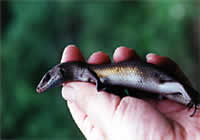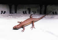 この小屋の存在は2回目にバリ島を訪れた時に知ったのですが、それ以来この小屋に着くと、ザックを置いて採集したり、休憩して昼食代わりの果物を食べるのがいつものパターンになっています。でも今年は、小屋の周りに住み着いているサンスキンクというトカゲを見付けたので、捕まえてみることにしました。最初はすばしっこくって捕虫網を使ってもなかなか採集できません。でも一端採集して手に持つと、おとなしくなって色々な角度から撮影をさせてくれました。 |