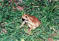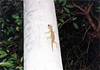 | イチジク科の植物の果実を食べに、オオコウモリやリス?が集まって賑やかです。 街路灯の周りには、光に集まった昆虫を狙ってヒキガエルの仲間が這っています。建物の壁や街路灯の柱にはヤモリの仲間やトッケイヤモリが這っています。海外で民家周辺の光に集まる爬虫類を観察する時は、神経を使います。それは不審者に間違われて警察に通報されることがあるからです。警察のお世話にならないように、弱いペンライトを使って生きものを見付け、そそくさと撮影してその場を後にし、次の場所に移動することとなります。 |