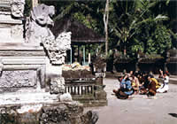 バリの村々は、3つの寺院(プラ)が有り、主にヒンドゥー教の3大神であるシヴァ、ヴィシュヌ、ブラフマを祀っています。この寺院も村民達が日常的に参拝に訪れます。プラを含む村が所有する寺院をカヤンガン・デサといいます。その他では、地方の人々が参拝に訪れる王家が建造した寺院や海岸部等の村に属さない場所にある寺院をダン・カヤンガンといい、また島民(バリヒンドゥー教徒)全体が参拝し、最も格調高い寺院をサッド・カヤンガンと言います。 |