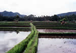 | 私がトゥガナン村を訪れる時は、ブサキ寺院と組み合わせることが多いため、南部のリゾート地を夜明け近くにスタートします。車窓からはのどかな田園風景や牛の放牧を見ることができます。また海岸部では、昔ながらの製塩風景や日干しレンガを作る光景も見ることができます。 | |