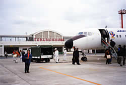 | さて今回の徳之島の目的は、5月の奄美大島に続き奄美群島第2弾として、イボイモリの生態観察と写真撮影及び飼育下繁殖用成体の採集です。徳之島は初めて入る島なので未知の部分が多いのですが、いままでの沖縄・奄美の経験をふまえてどのくらい成果があげられるか、期待に胸を膨らませて12月7日の朝を迎えました。 毎度の事ながらアシスタント役の妻との今年最後の南西諸島調査、否が応でも力が入ります。 朝6時半に我が家を出発し、羽田から鹿児島経由で12時近くに徳之島に到着しました。 空港でレンタカーに乗り換え、さっそく調査開始です。 地図を見ながら最初に訪れたのは、宮崎県在住の同好の友人Hさんから教わったポイントです。 |