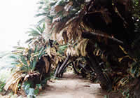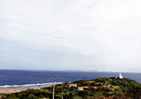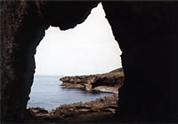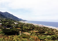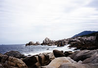 | 次に訪れたのはソテツトンネルです。集落や畑の防風林として植えられたソテツがトンネルのように重なった所です。犬の門蓋(インノジョウフタ)という、海岸線の奇岩群も見ました。どこも想像以上の迫力で楽しかったです。 徳之島の最北部からは奄美大島を望むことが出来ました。今年5月の奄美大島でイボイモリを3匹しか見つけられなかった事や夜間調査のフィルムを落としてしまったことが思い出されます。 徳之島での成果を踏まえ、濃紺の海の向こうにはっきりと見える奄美大島に向かって、リベンジを誓う2人なのでした。 |
