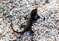 | のんびりとチェックアウトを済まし、10時過ぎにホテルをスタートし、徳之島の観光スポットを訪ねます。まずは、北部のムシロ瀬の奇岩と海岸の自然植生を見て記念写真を撮りました。海岸に流木が流れ着いていたのでひっくり返してみると変わった模様のヤモリの幼体が出てきました。ミナミヤモリかもしれません。 | ||||