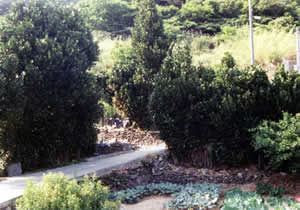 フクギに囲まれた畑