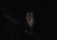 | 尾根道をかなり進んだ当たりで、先を行くしろちゃん・森ちゃんの車のテールライト光っています。車に近づくと、イタジイ林にライトを当てているようです。その先をよーく見るといました。リュウキュウコノハズクです。何時もホホー・ホホーと鳴いて夜間観察を楽しませてくれる鳥です。 | |