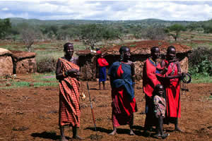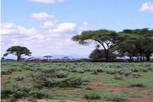 National Park)に向かいます。 ツァボ国立公園は、モンバサに至るハイウェーを挟んで西と東に分けられてますが、総面積は約20000平方キロ、四国を一周り大きくした規模で、アフリカで2番目に大きな国立公園です。 アンボセリからは、比較的近いため少し寄り道をして、マサイ族の集落を訪ねます。 |