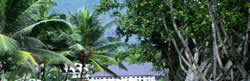 | 車を走らせると島の中は何とも言えず甘い香りに包まれています。それもそのはず、周りにある木々は自然のままのスパイス林。車を停めてよく見るとクローブやナツメグなど、普段は乾燥物しか見たことないようなものが本来の姿でいっぱい!市場にあふれているわけです。 | ![]() |