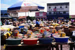 | 視界一杯に広がる緑の樹林と真っ青な空を背景に赤く伸びる獣道、悠々と動き回るバッファロー。動物園で見慣れた動物ですが、まるで違った生きもののように見えます。何よりも、毛並みなど美しいことに驚かされます。 |