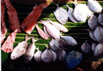 | 店では、香辛料や薬草、野菜に果物、穀物や豆腐などが沢山売っています。魚類も豊富に並んでいます。店を一通り覗いた後で、山で食べるバナナを買い込んでホテルに戻りました。 | ![]() |
