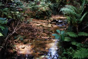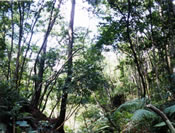 | まずは、中部に生息するイボイモリの観察と写真撮影です。 本島中部に生息するイボイモリは、開発により生息環境が減少・悪化し、生息数が極端に少ないらしいため、見つけられる可能性は低いのですが、北部の個体群とは形態的な違いがあると言われているため、是非見てみたいイボイモリです。 高速道路を沖縄北ICで下り、去年下見した場所を中心に調査の開始です。 蚊の大群にまとわりつかれながら、可能性の高そうな場所で探しますがやっぱり見つけることが出来ません。 ここで見つけられなかったら諦めようと思いながら最後のポイントに向かいます。 妻を車に残し、1人で林に分け入ります。 ハブに注意し、藪こぎしながら斜面を下りると、小さな沢が目に入りました。 水の流れも緩やかで、所々に水溜まりも見えます。沢に下りると粗大ゴミが捨ててあったり、汚水が流れ込んでいるのか、水質も余り良くなさそうですが、環境構造としては、今まで調査し、生息を確認した沢によく似ています。 頭にタオルを巻き、気合いを入れて、可能性の高そうな石や倒木を手鍬を使っておこしますが・・・出てくるのはミナミサワガニばかり。 |