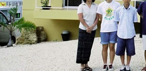 ぷかぴーのエントランスで記念写真(右端がいずみさんとラフティー・隣がたけちゃん) |