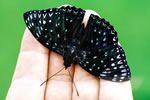 | スミナガシは、国内では本州以南に広く分布するタテハチョウの仲間ですが、八重山産は大型で翅の色彩が暗い藍色になる特徴があり別亜種になっています。 その後も、ヤエヤマイチモンジやスミナガシに加え、カラスアゲハの八重山亜種やナミエシロチョウ、昼蛾のサツマニシキなどを採集しました。 |
